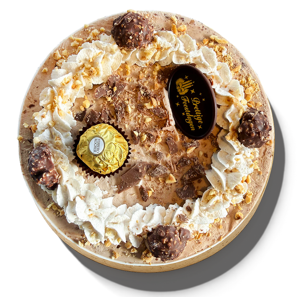 Romige chocoladeroom met knapperige hazelnootaccenten, geïnspireerd op de smaak van Ferrero. Perfect als feestelijke taart voor 6 tot 8 personen.